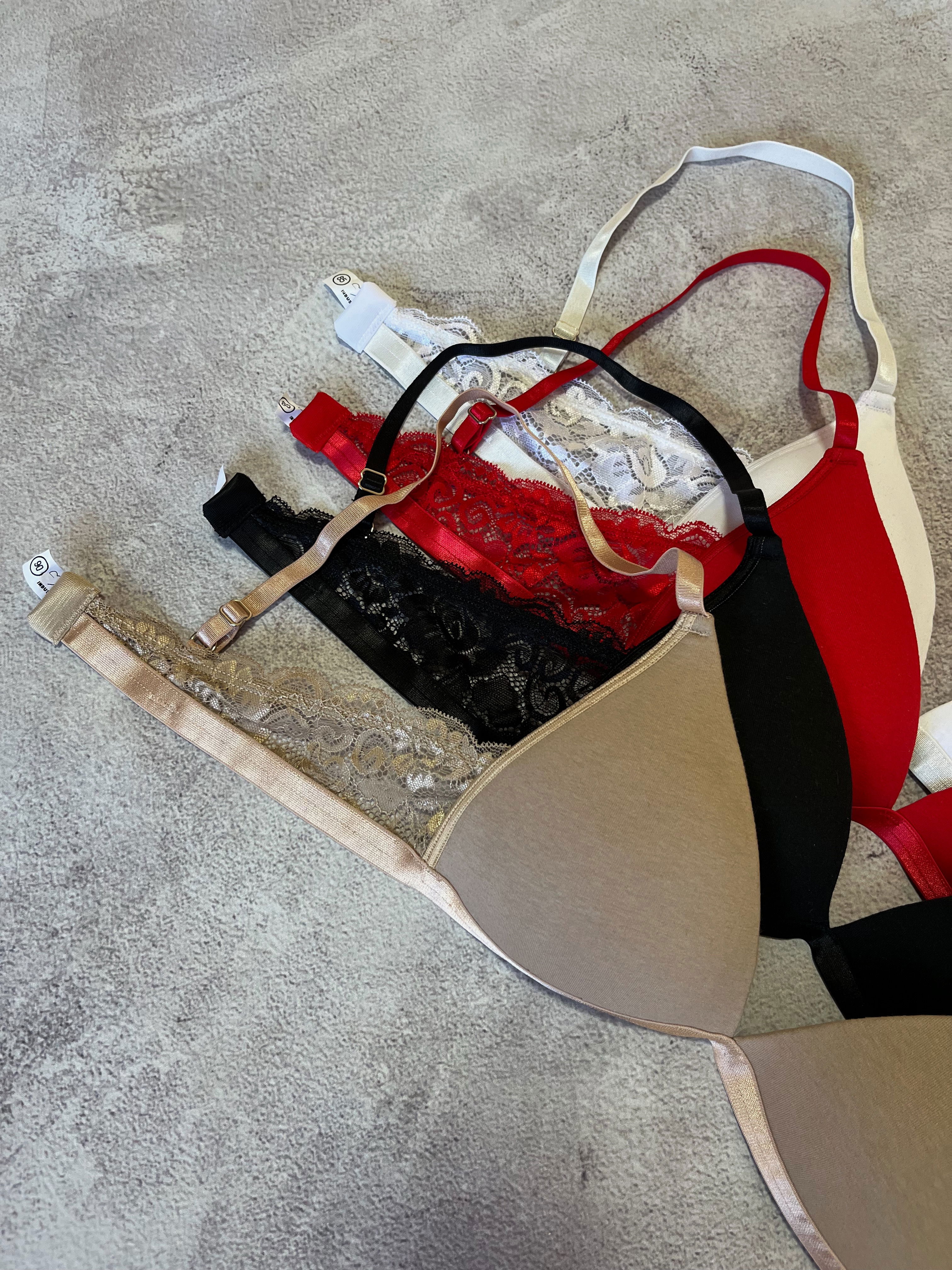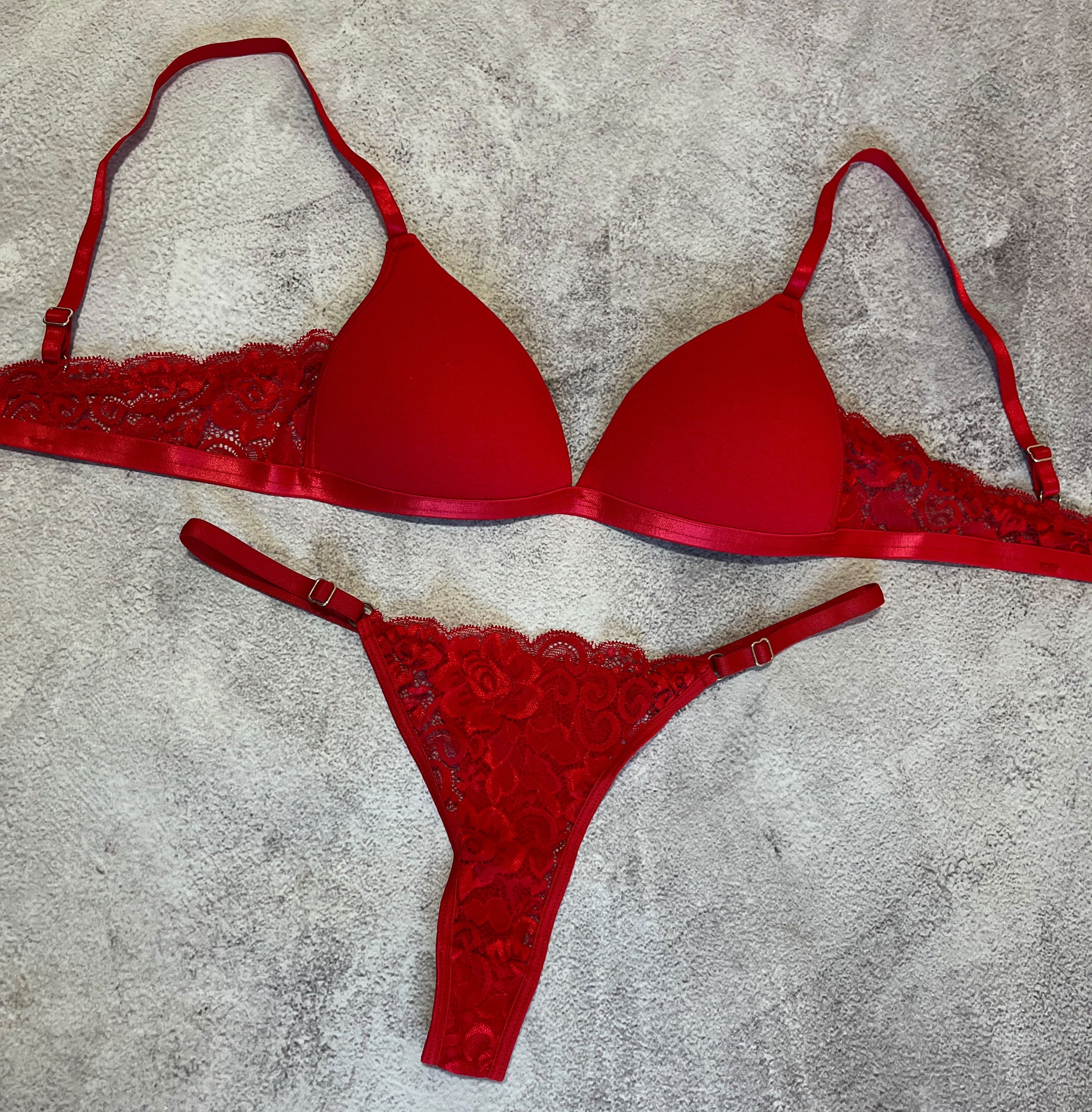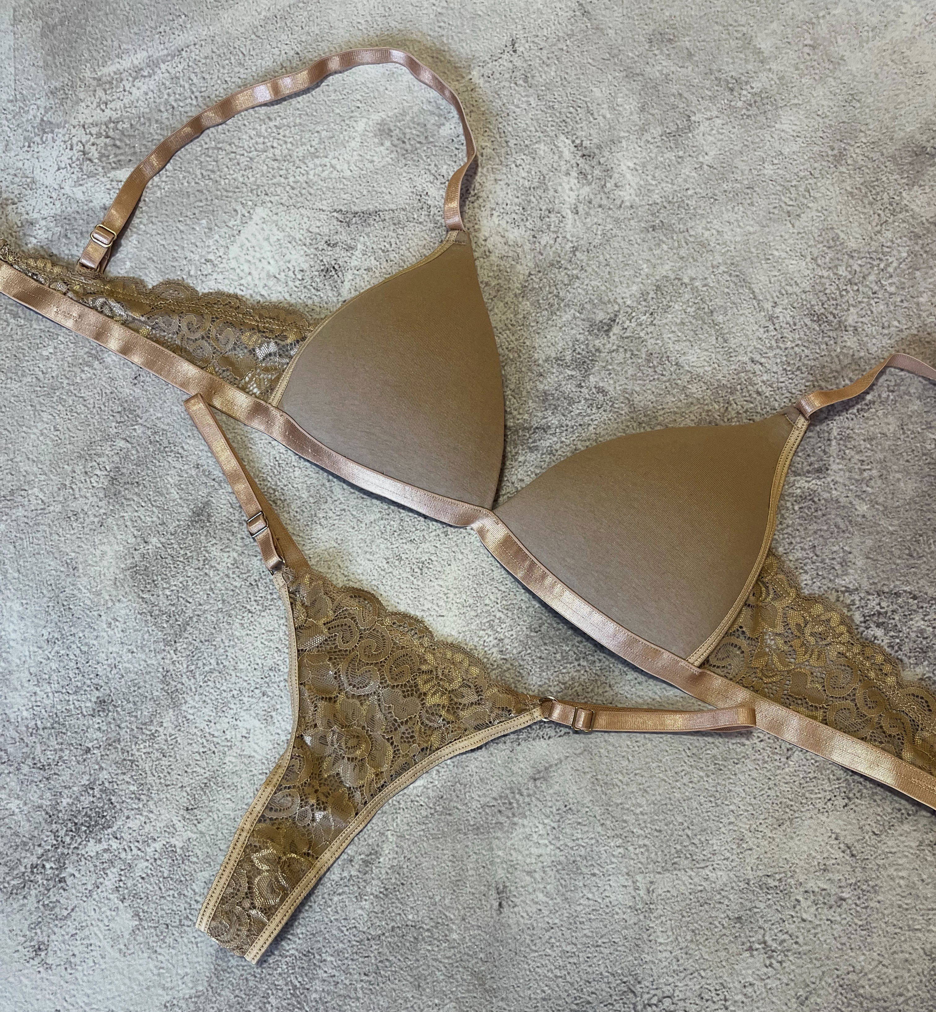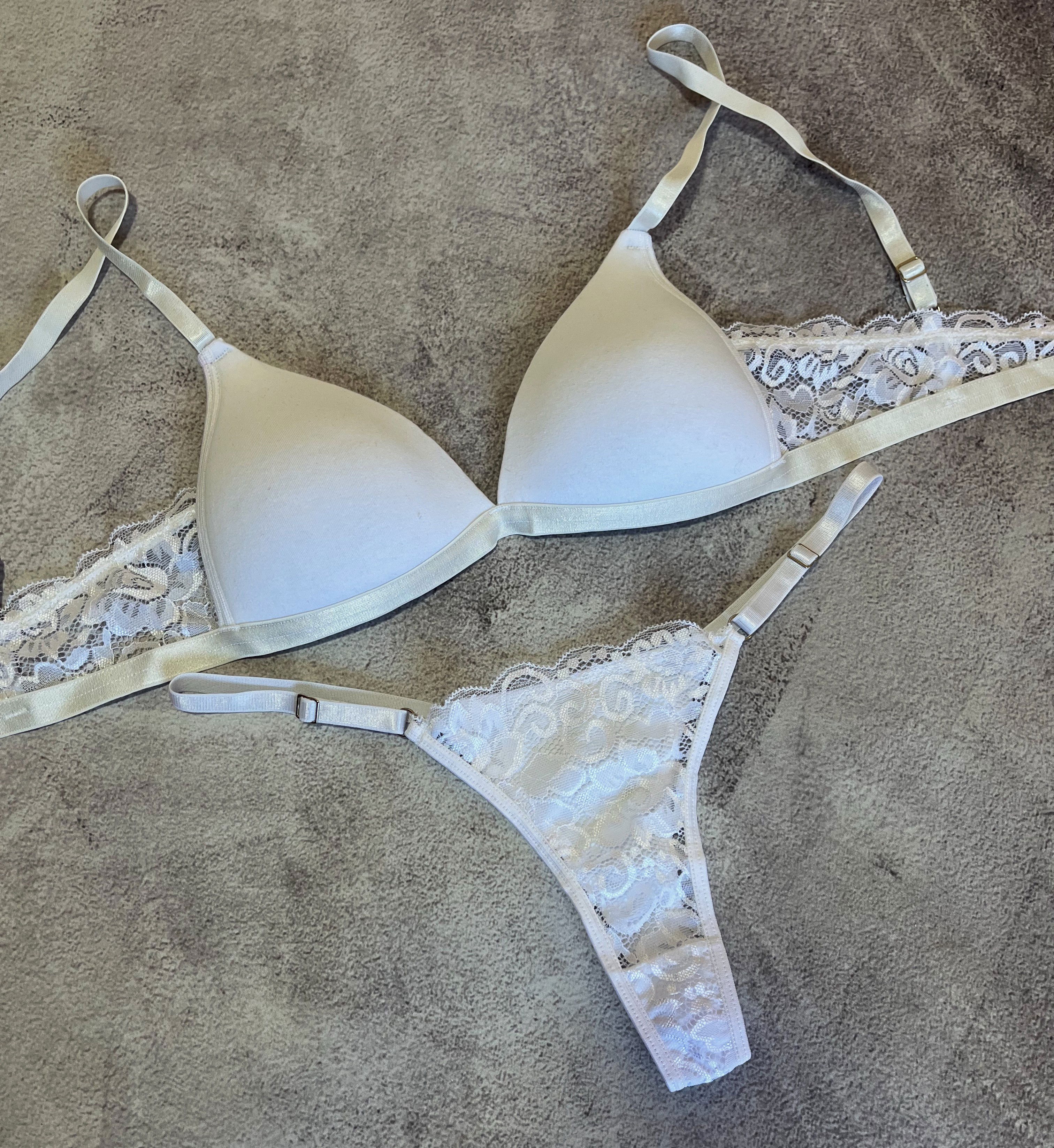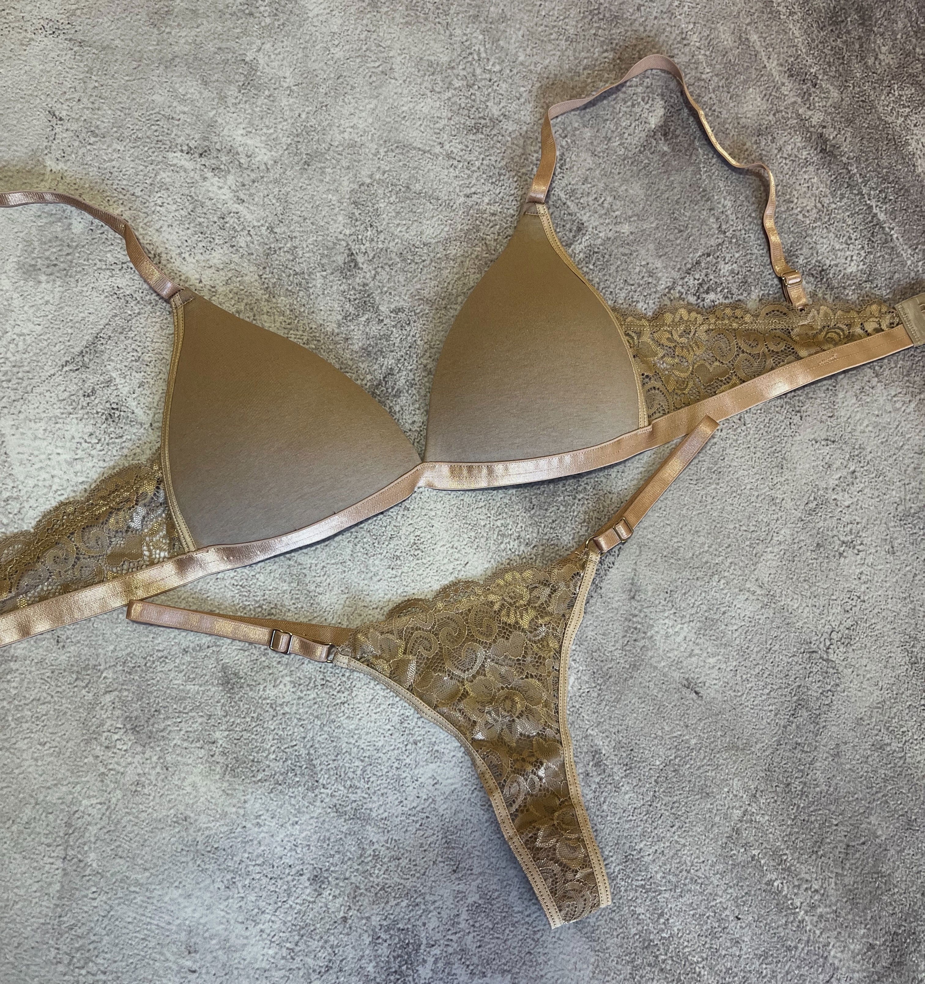Conjunto de ropa interior con corpiño taza soft de algodón con detalles de encaje y bombi colaless regulable.
