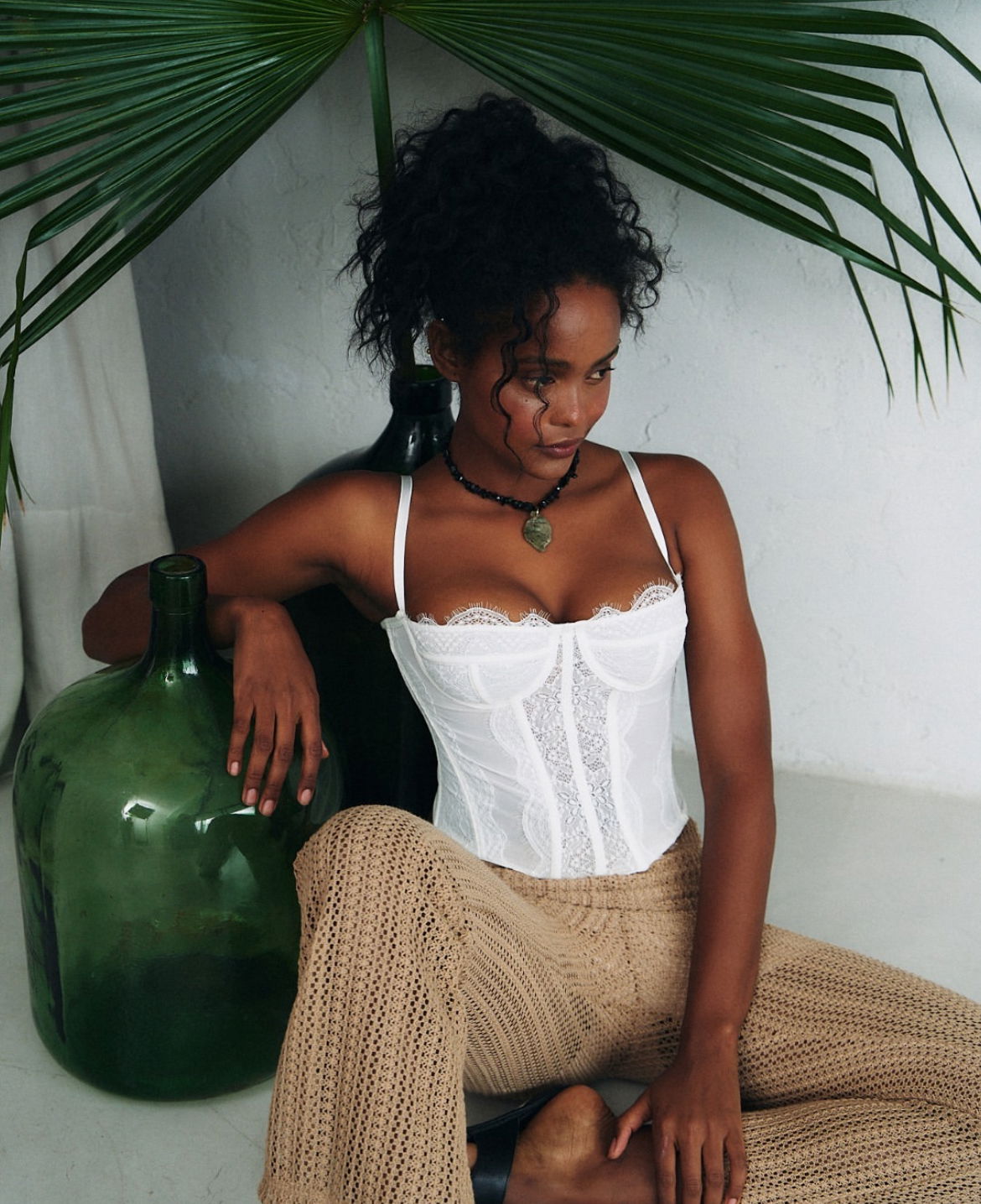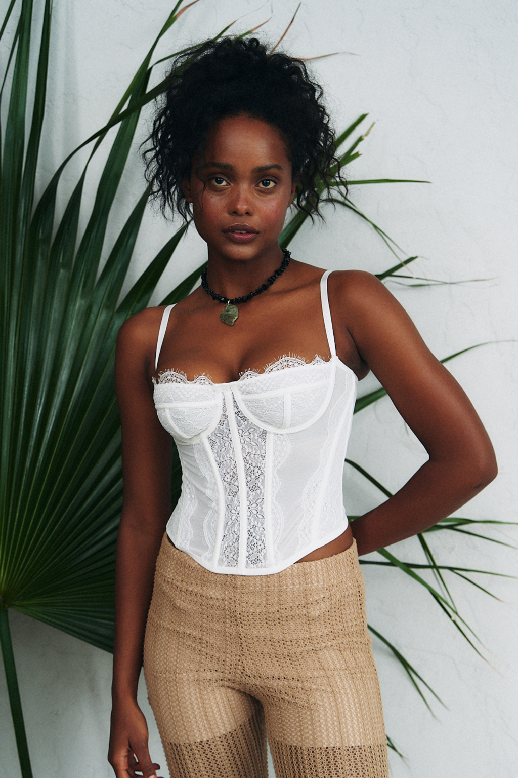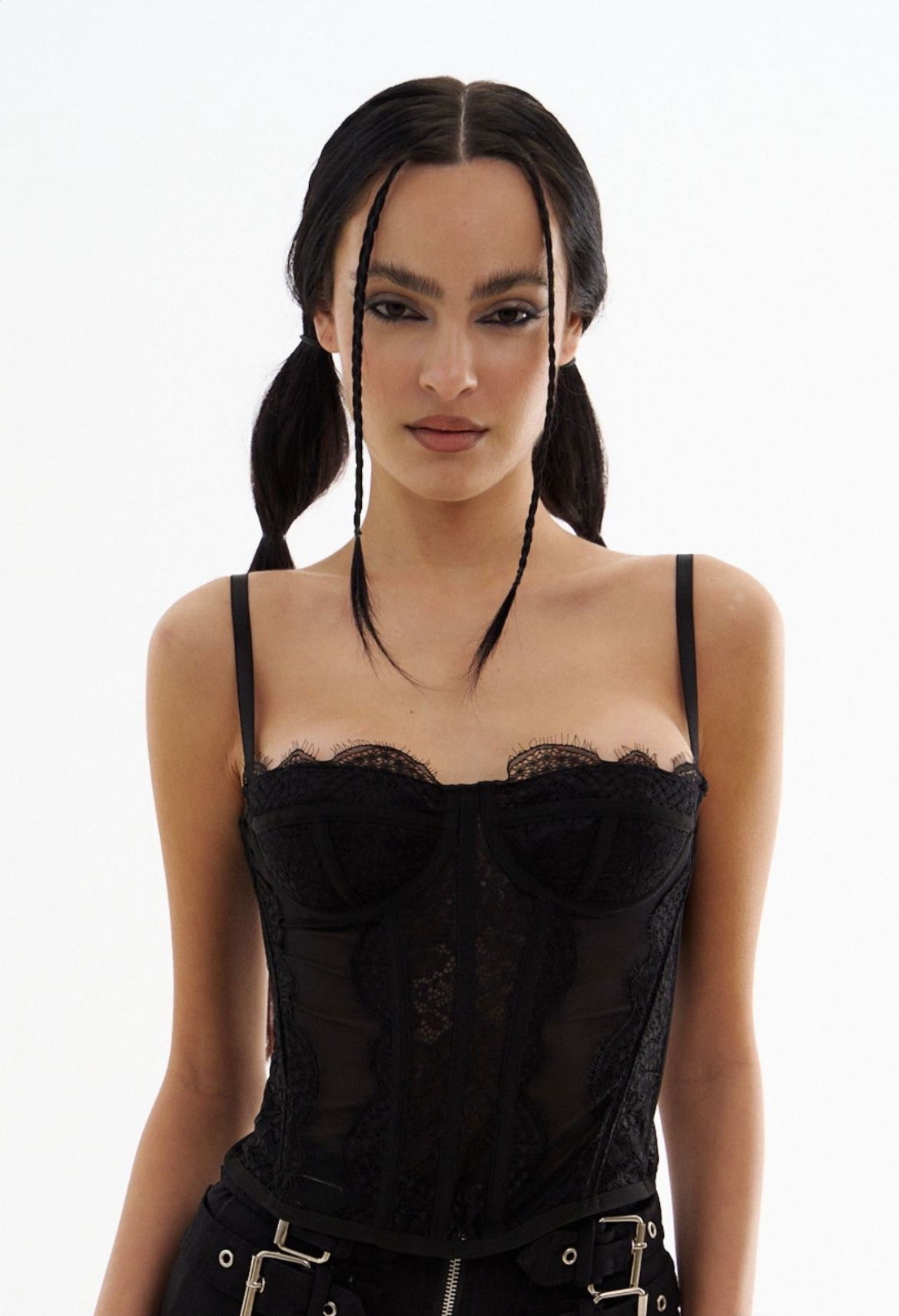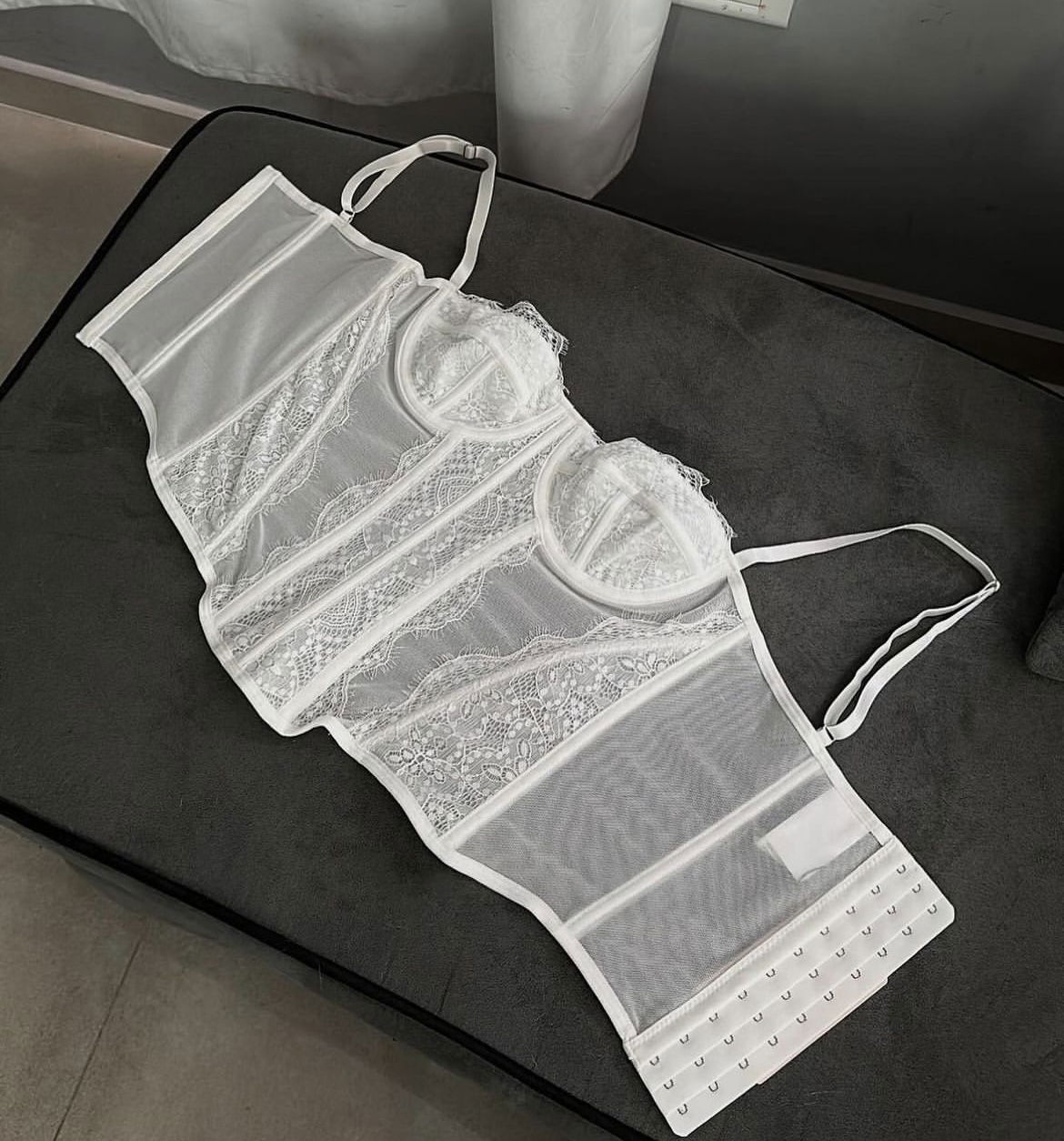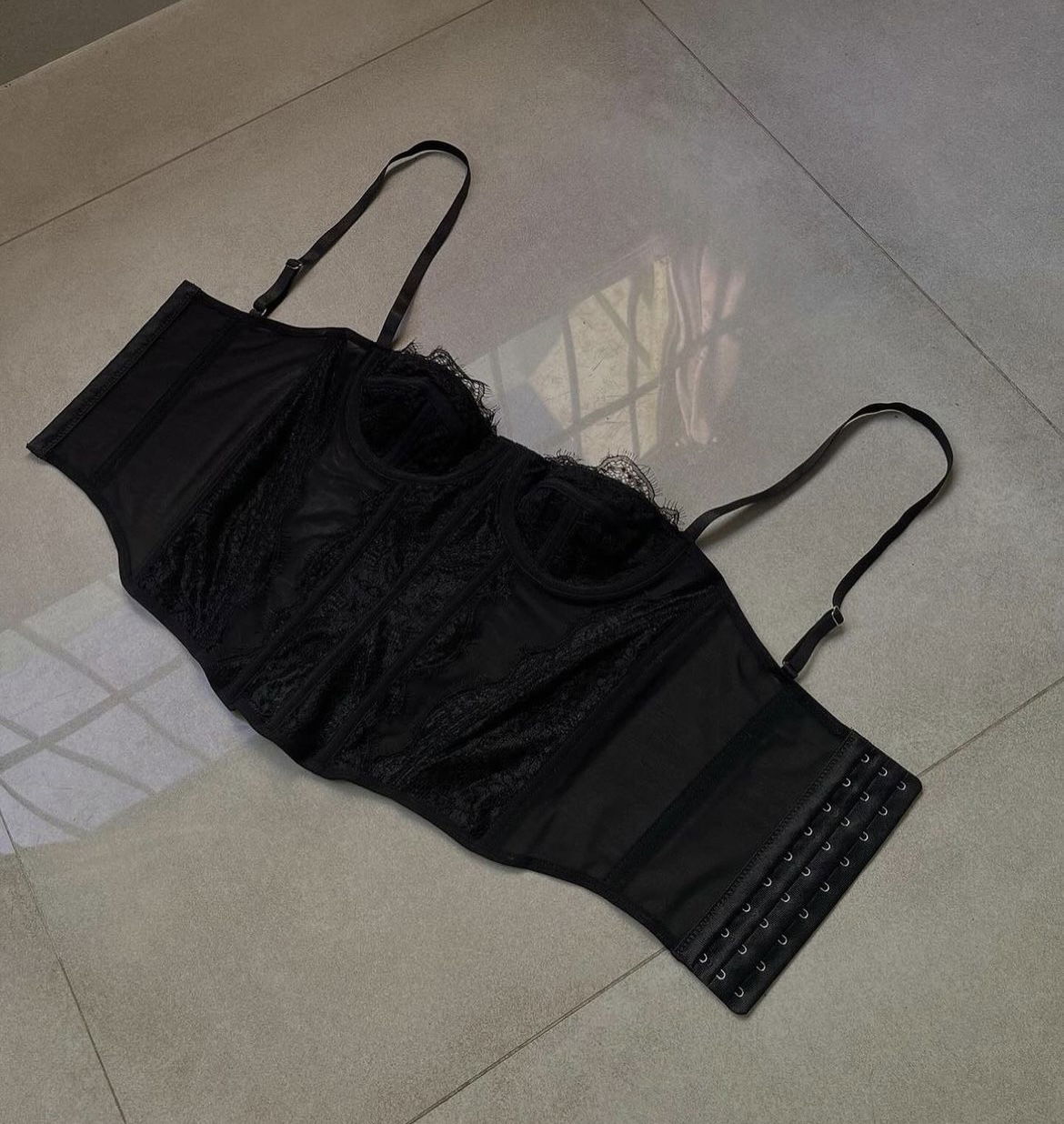 Corset Urban Importado, de microtul y encaje con detalles de puntilla. Tiene varillas de plástico que le dan soporte a la prenda.
