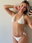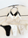 Bikini de lycra con textura y detalles de rombos, corpiño triangulito y bombi colaless para atar.