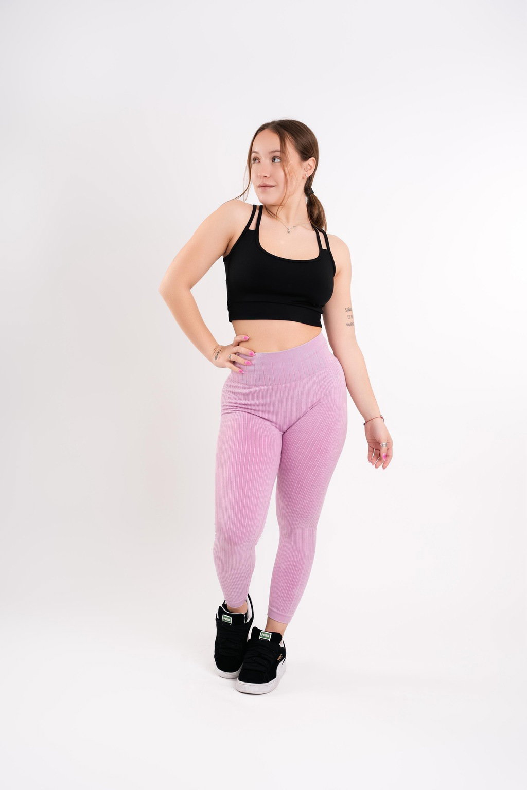 Calza deportiva levanta cola, super elastizada, se amolda al cuerpo.