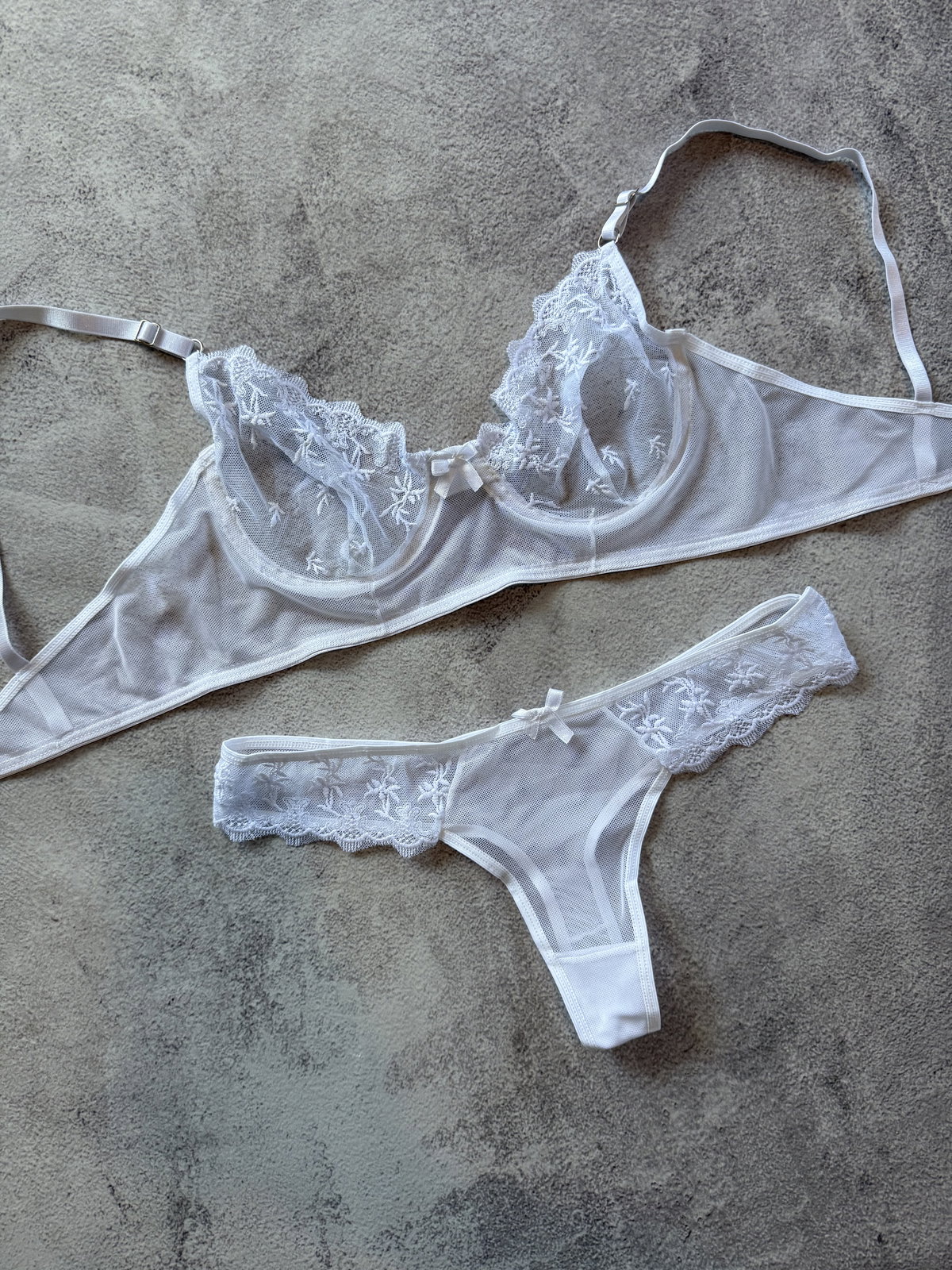 Conjunto de microtul bordado con bombi colaless completa y corpiño con arco sin relleno.