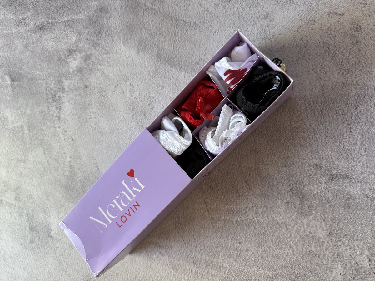Pack x6 less regulables surtidas en colores y telas, con cajita organizadora.