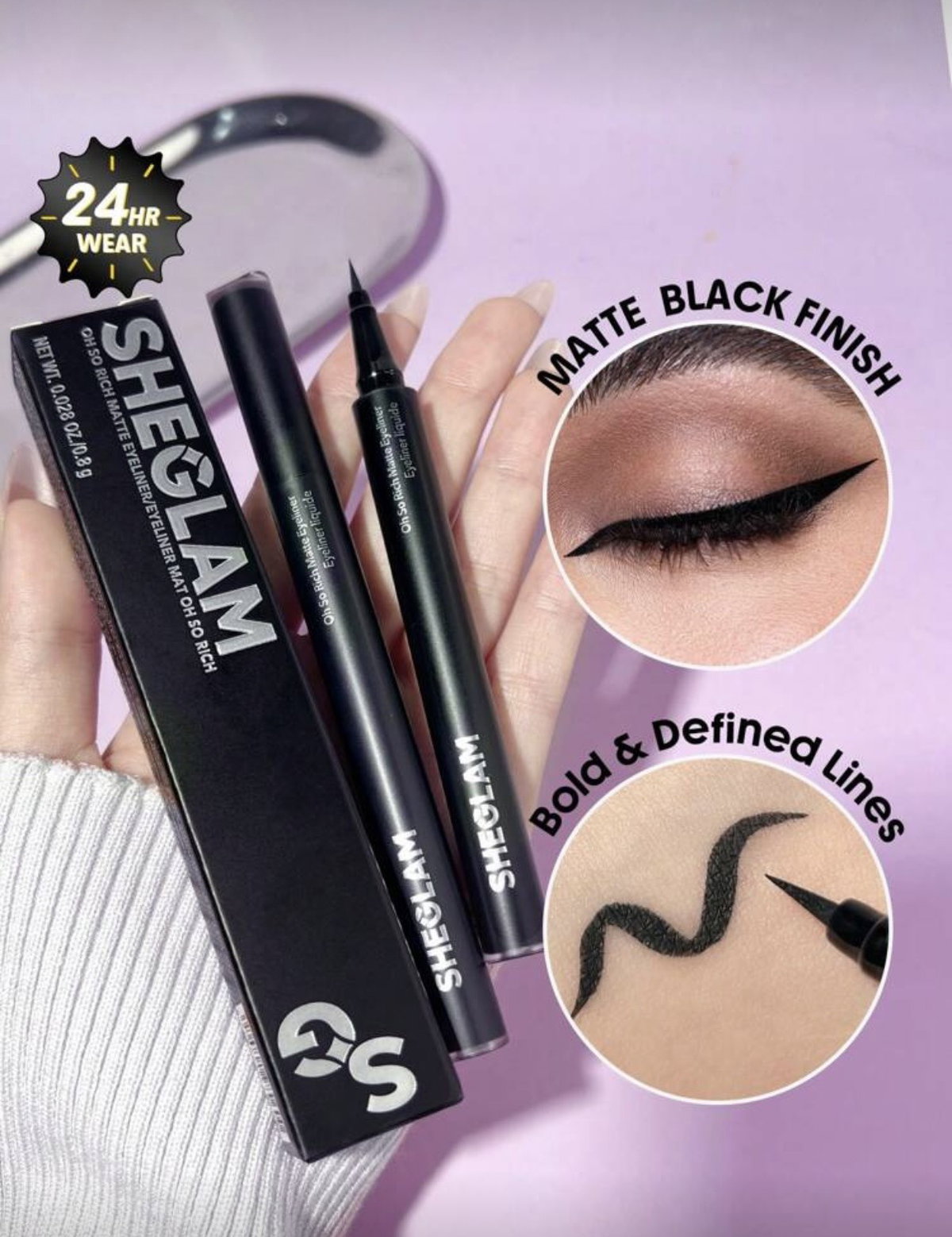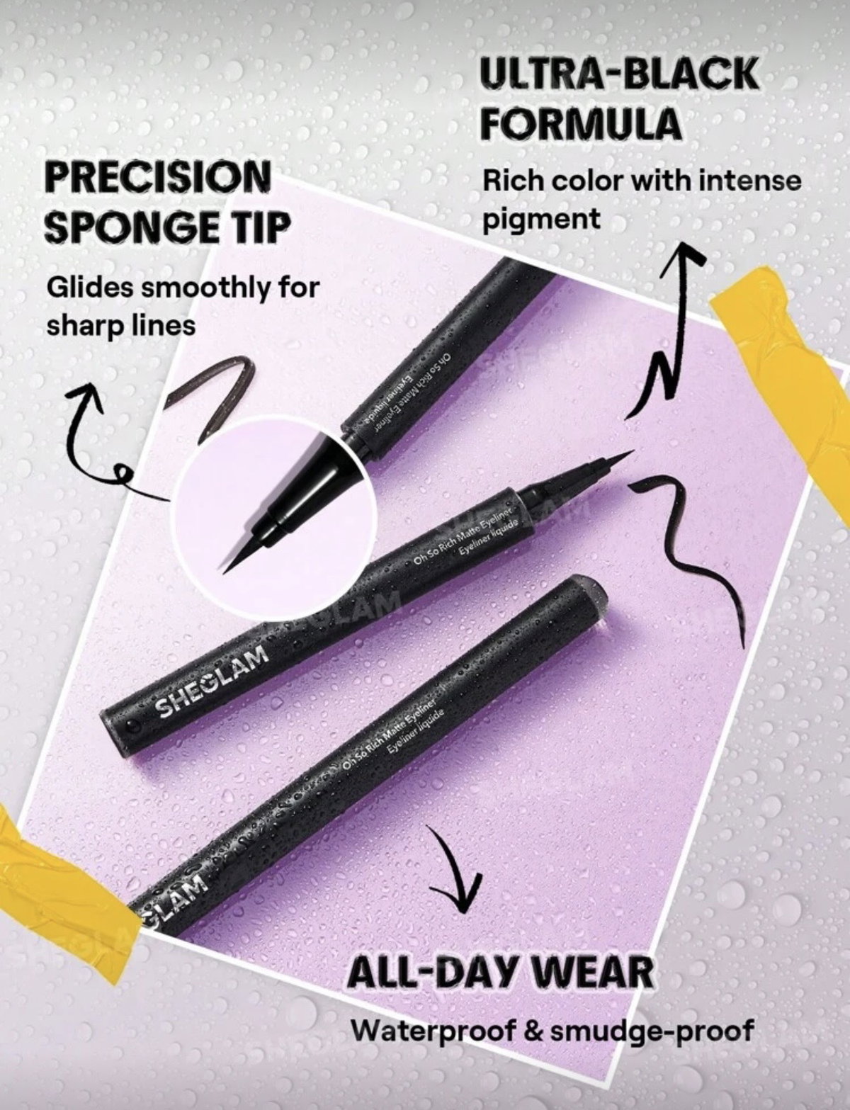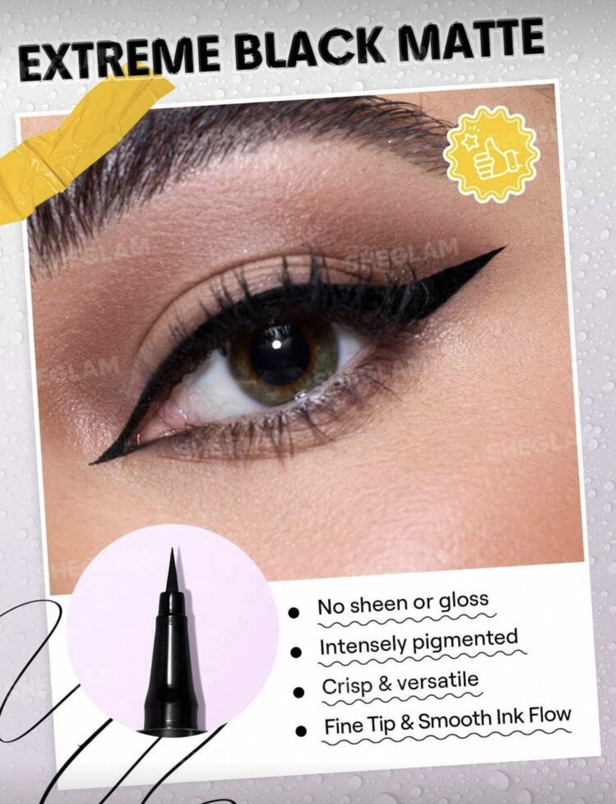 Delineador en fibra de la marca Sheglam, tiene un color negro intenso y es de larga duración.