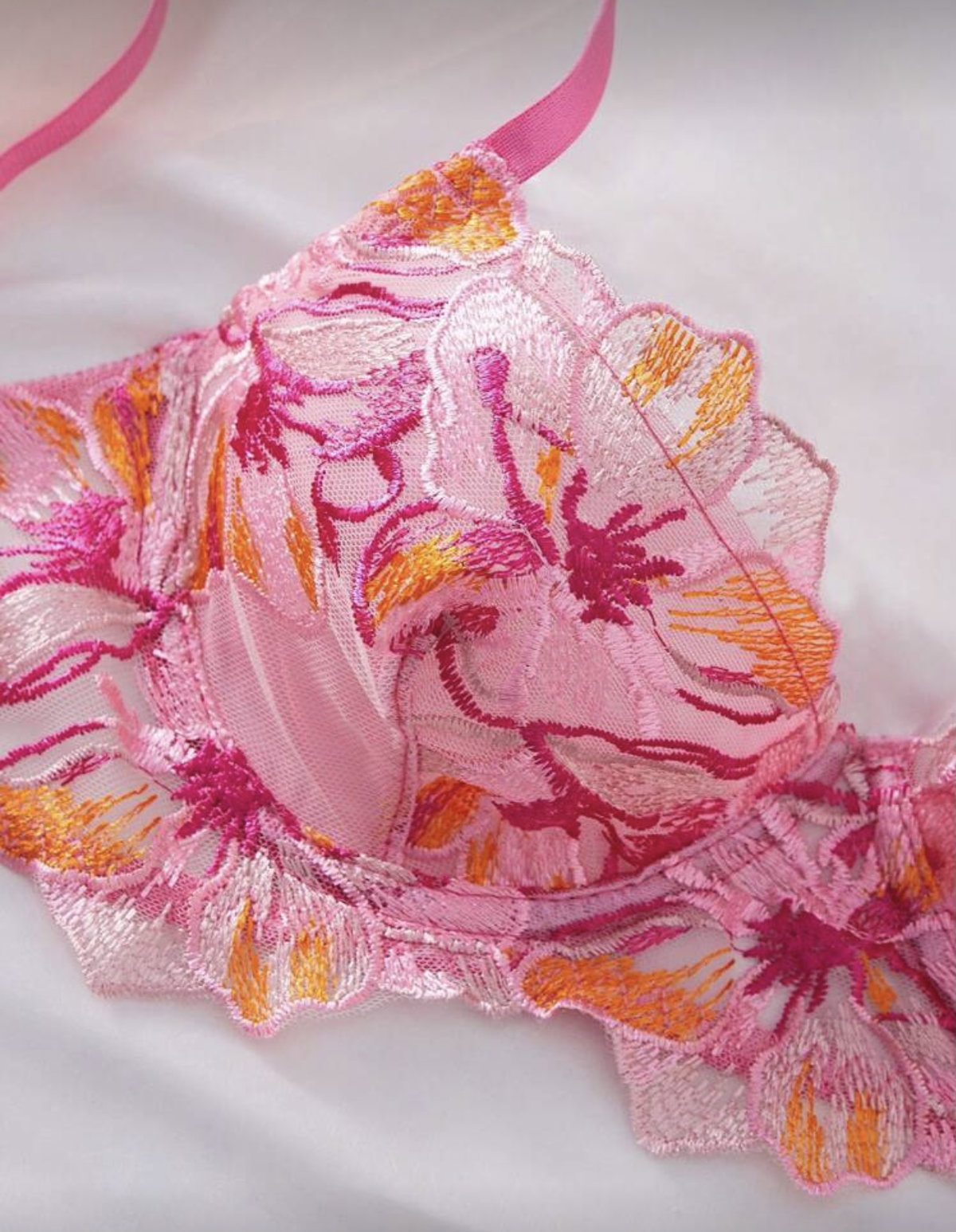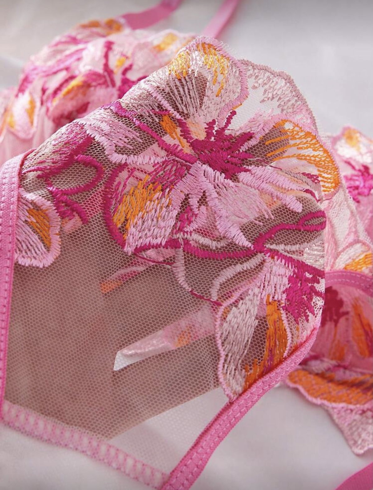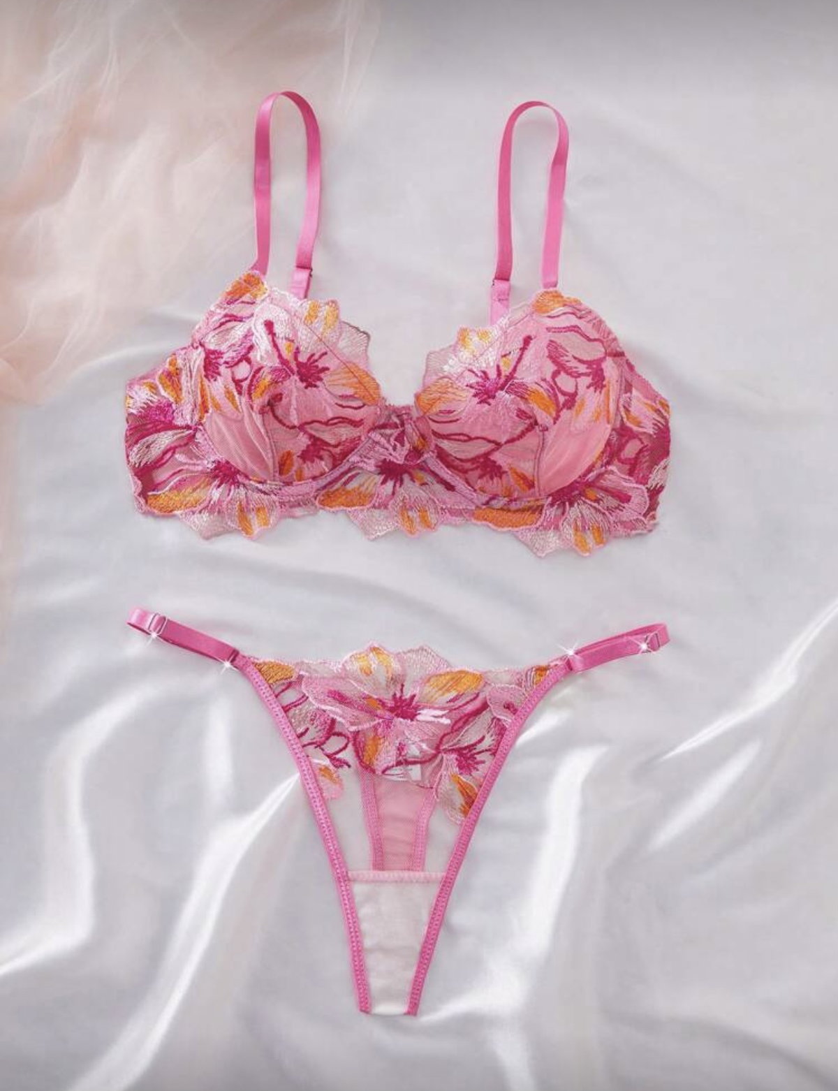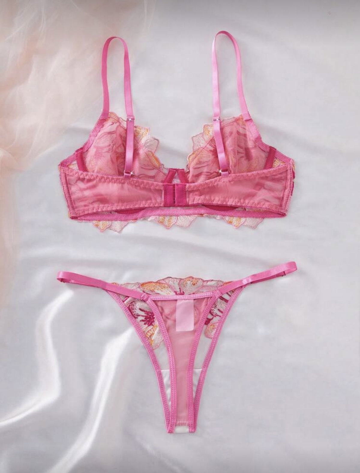 Set de lencería importado de microtul bordado con corpiño corselette y bombi colaless regulable.