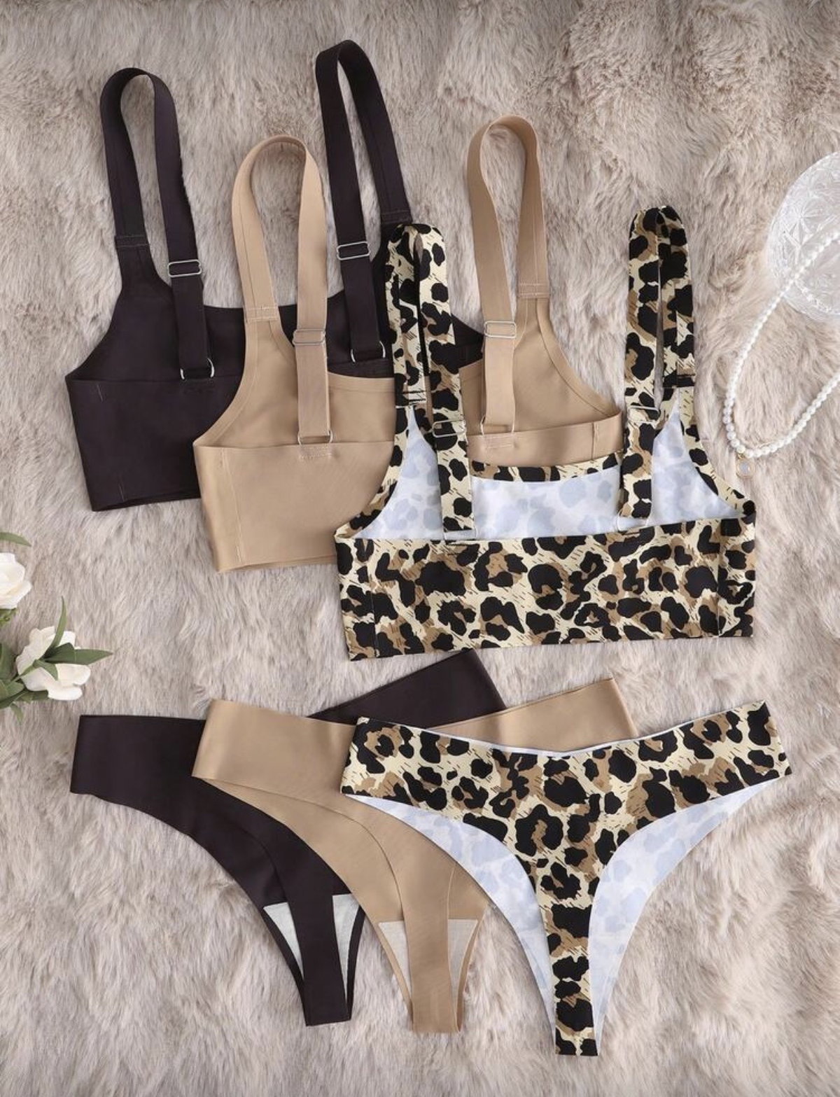 Set de lencería importado de microfibra estilo segunda piel con corpiño tipo top con tirantes regulables y bombi colaless completa.