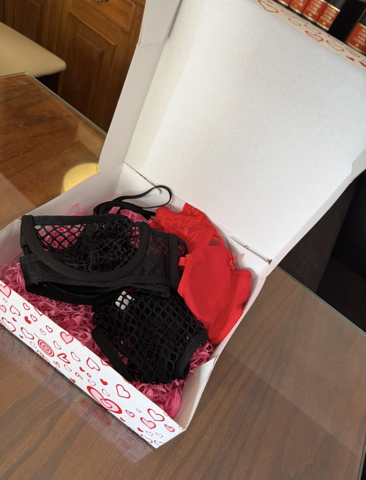 Box de San Valentín con 1 conjunto de ropa interior línea premium a elección con 2 colaless surtidas de regalo! Envianos tu selección por whatsapp al número 3804618490.