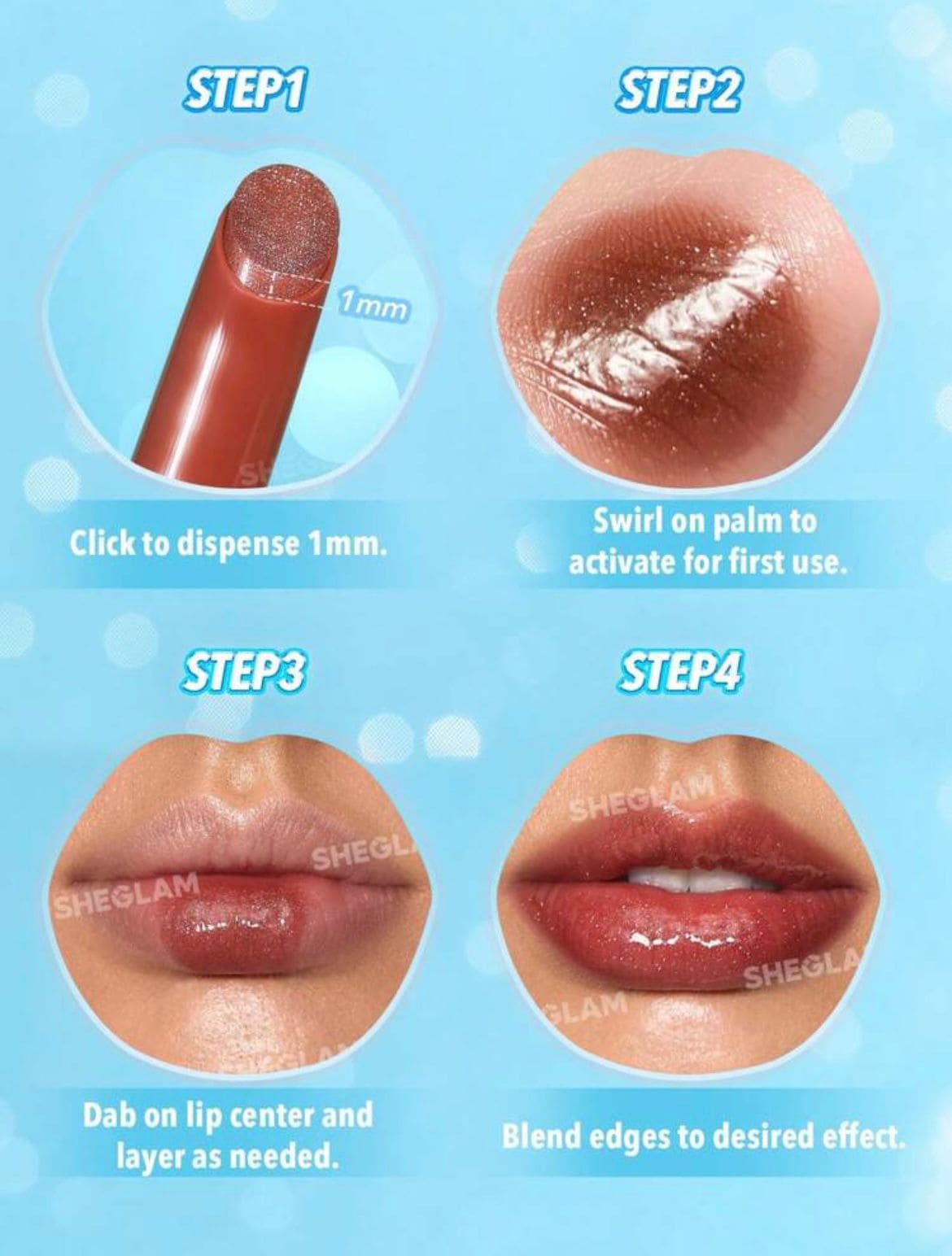 Gloss en barra con terminado brilloso de la marca Sheglam original, el color y la intensidad son construibles.